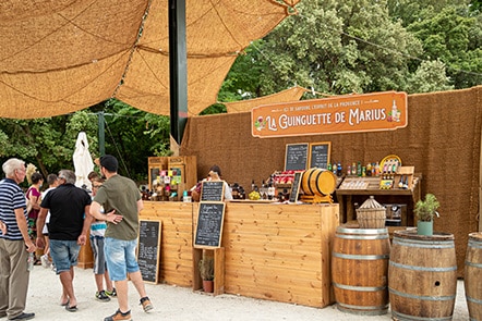 La Guinguette de Marius, installée sur la place du marché, vous propose une formule plus rapide mais très variée : un snack qui sent bon le sud ! C’est l’espace de restauration qui vous fera savourer le bien-vivre à la Provençale ! Pour profiter de votre journée, il est recommandé de vous présenter à la Guinguette de Marius avant 12h ou après 13h.