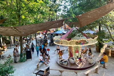 Open all day long, La Guinguette du Parc will be your best ally at mealtimes, but also for aperitifs, which you can enjoy to the full in this idyllic setting between two games of boules: drinks, hot dogs, nuggets, paninis, sandwiches, salads, crisps, cakes, ice creams… everything to delight the whole family!